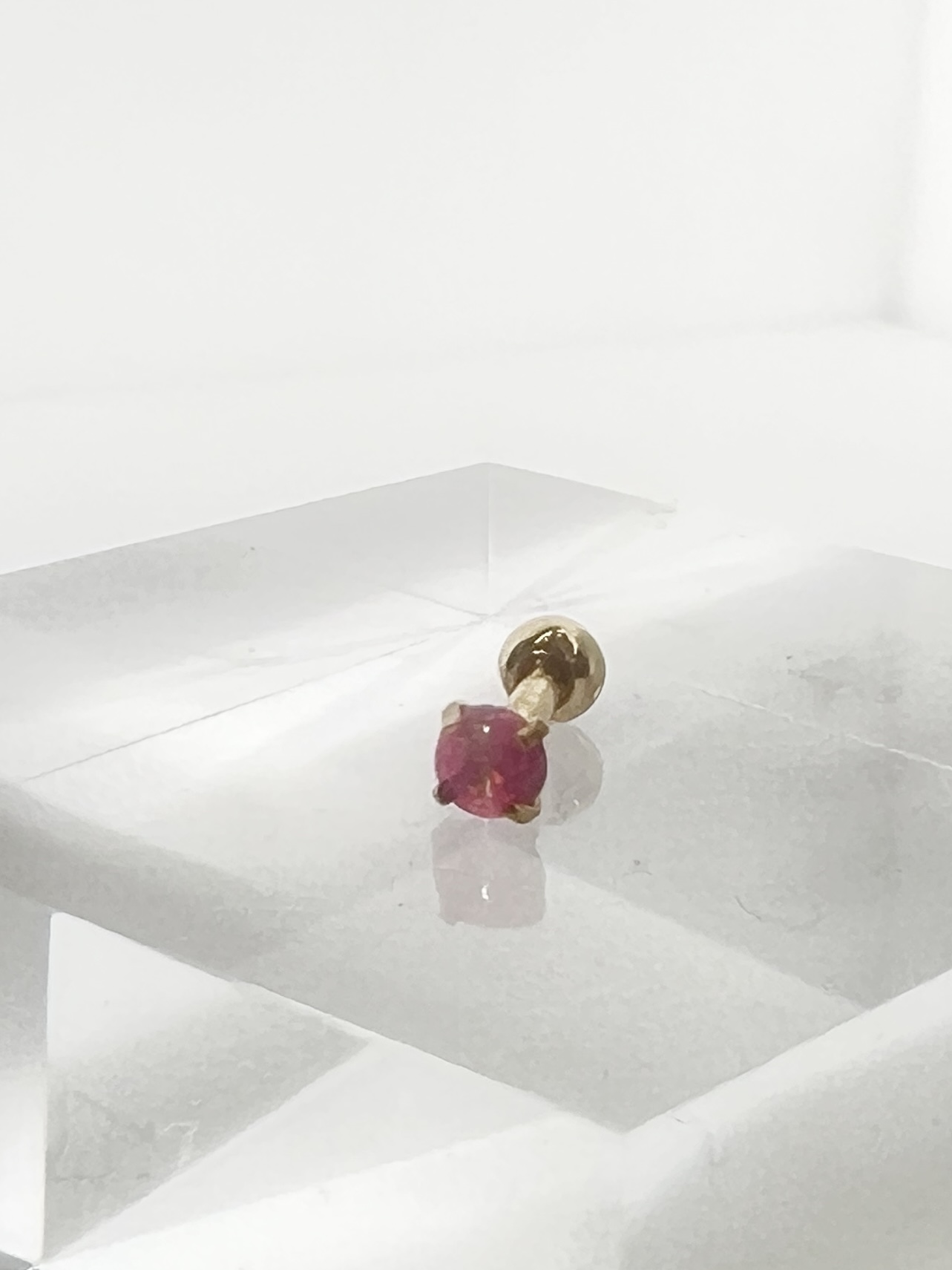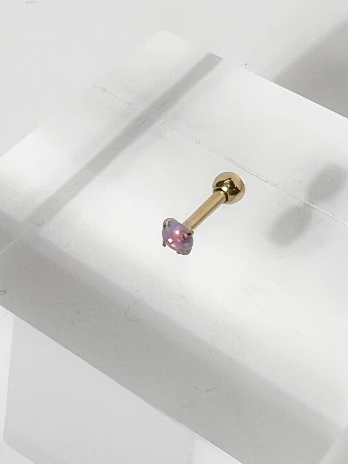 16G オーロラカラーストーンストレートバーベルボディピアス(ピンク)