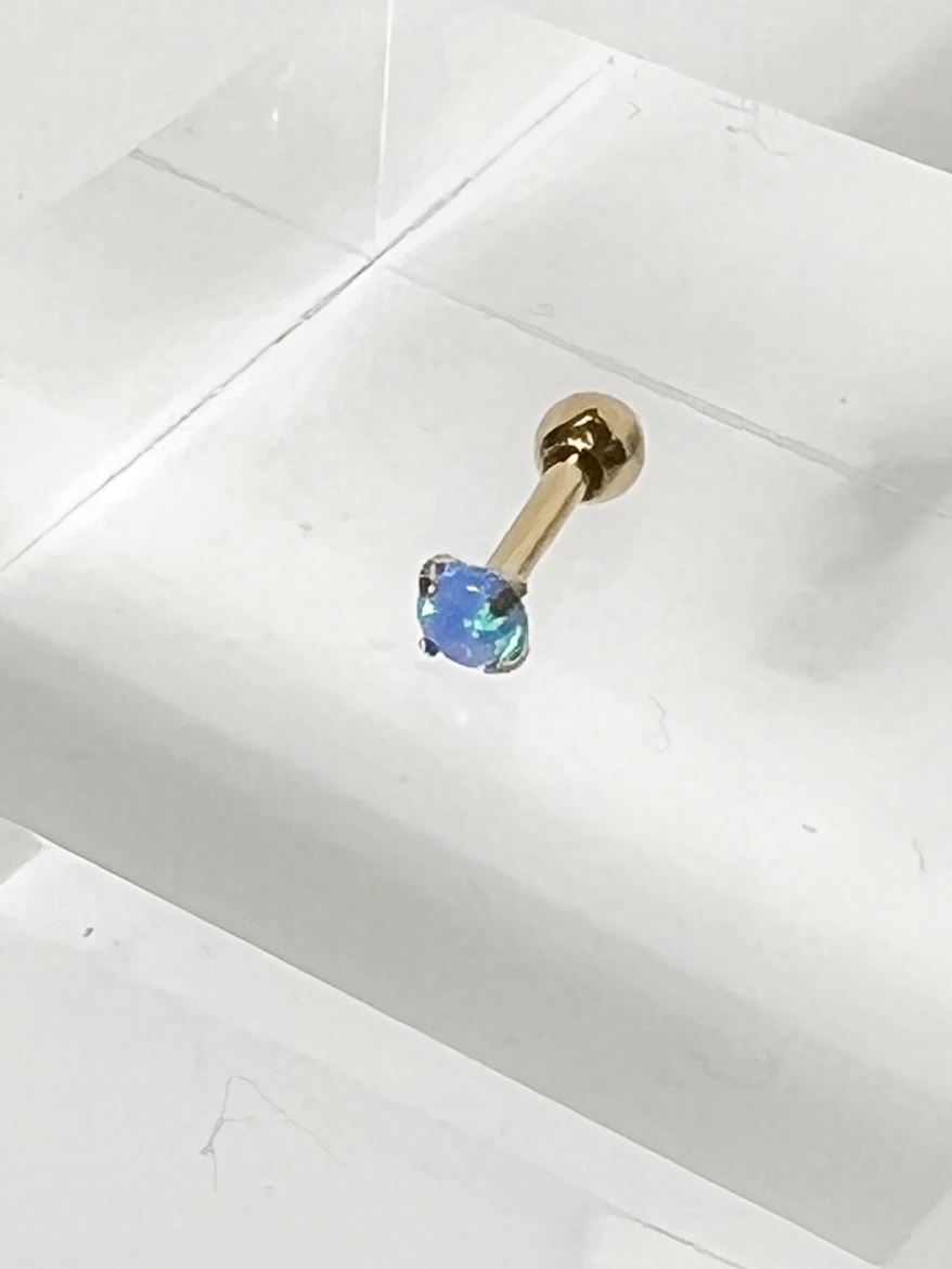 16G オーロラカラーストーンストレートバーベルボディピアス(ブルー)