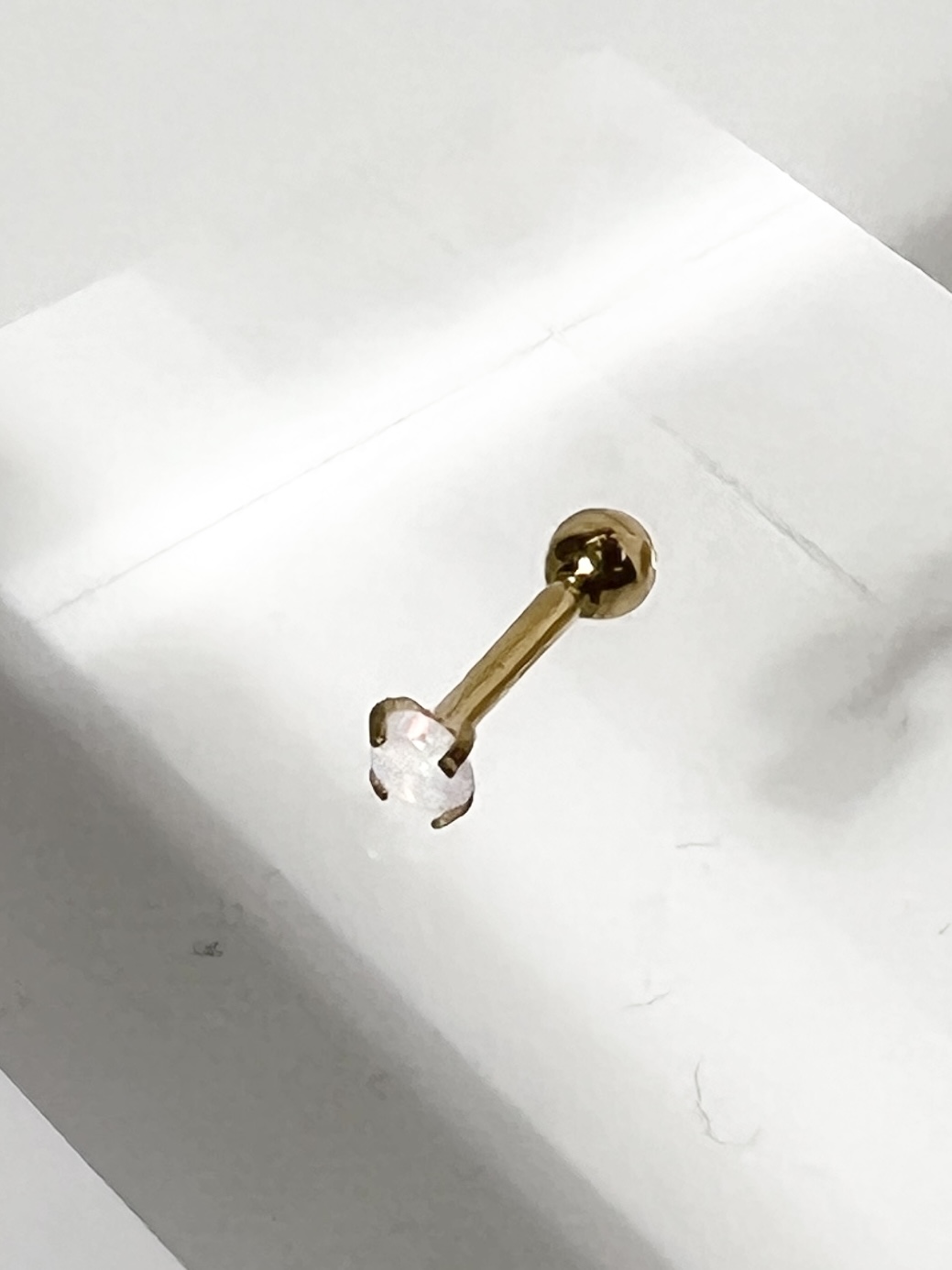 16G オーロラカラーストーンストレートバーベルボディピアス(ホワイト)