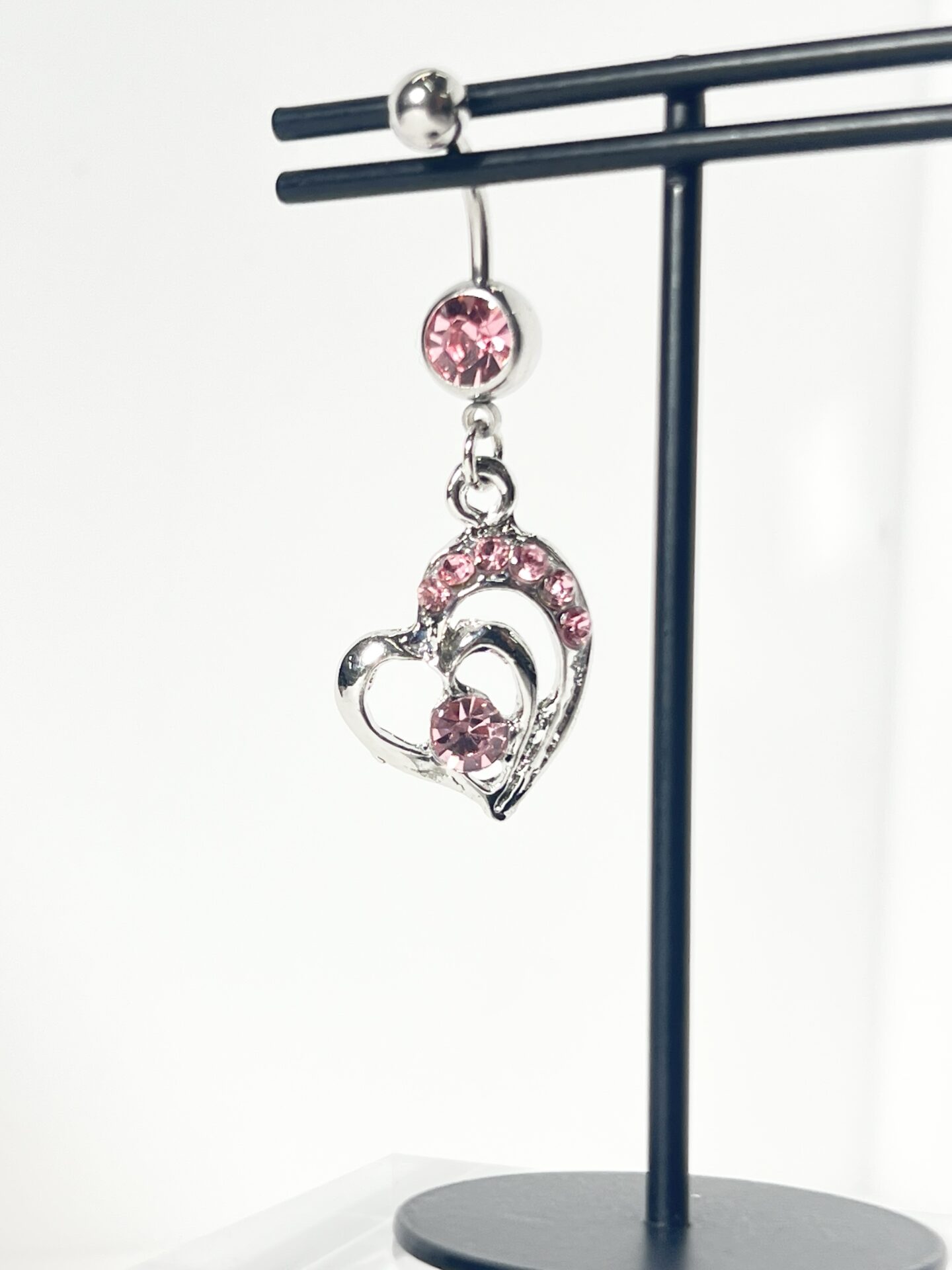 14G 2連オープンハート&ジュエルバナナバーベルボディピアス・へそピアス (ピンク)