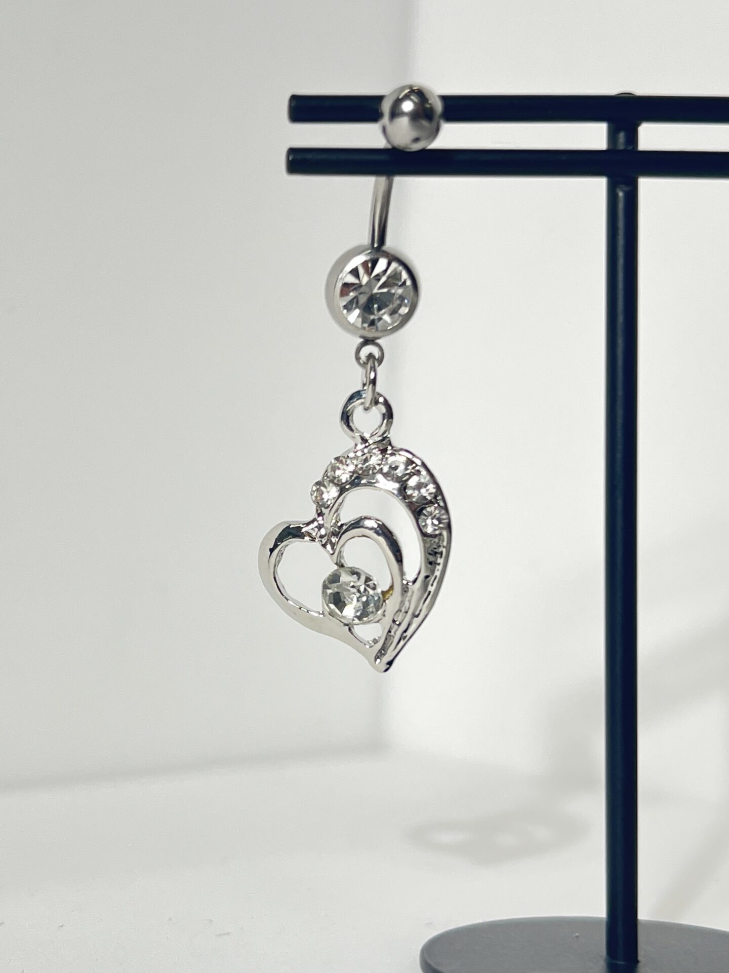14G 2連オープンハート&ジュエルバナナバーベルボディピアス・へそピアス ( クリア )