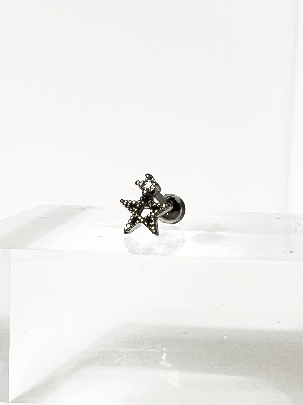 16G ワンポイントスターストレートバーベルボディピアス (シルバー)