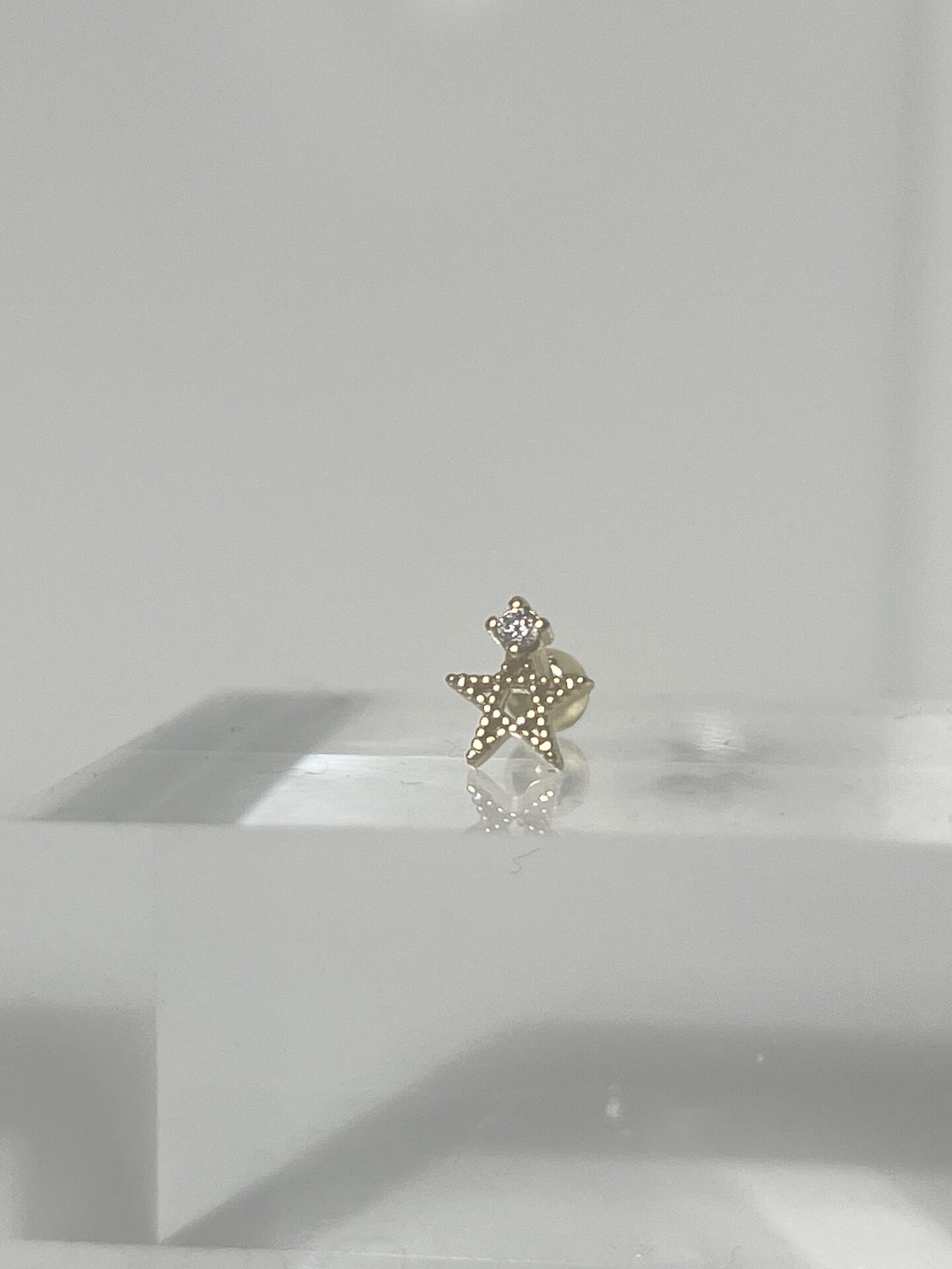 16G ワンポイントスターストレートバーベルボディピアス (ゴールド)