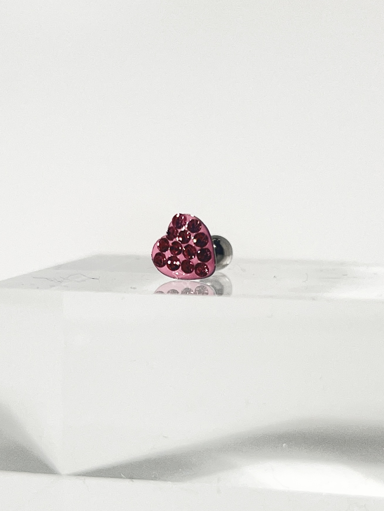16G パヴェカラーハートストレートバーベルボディピアス (レッド)
