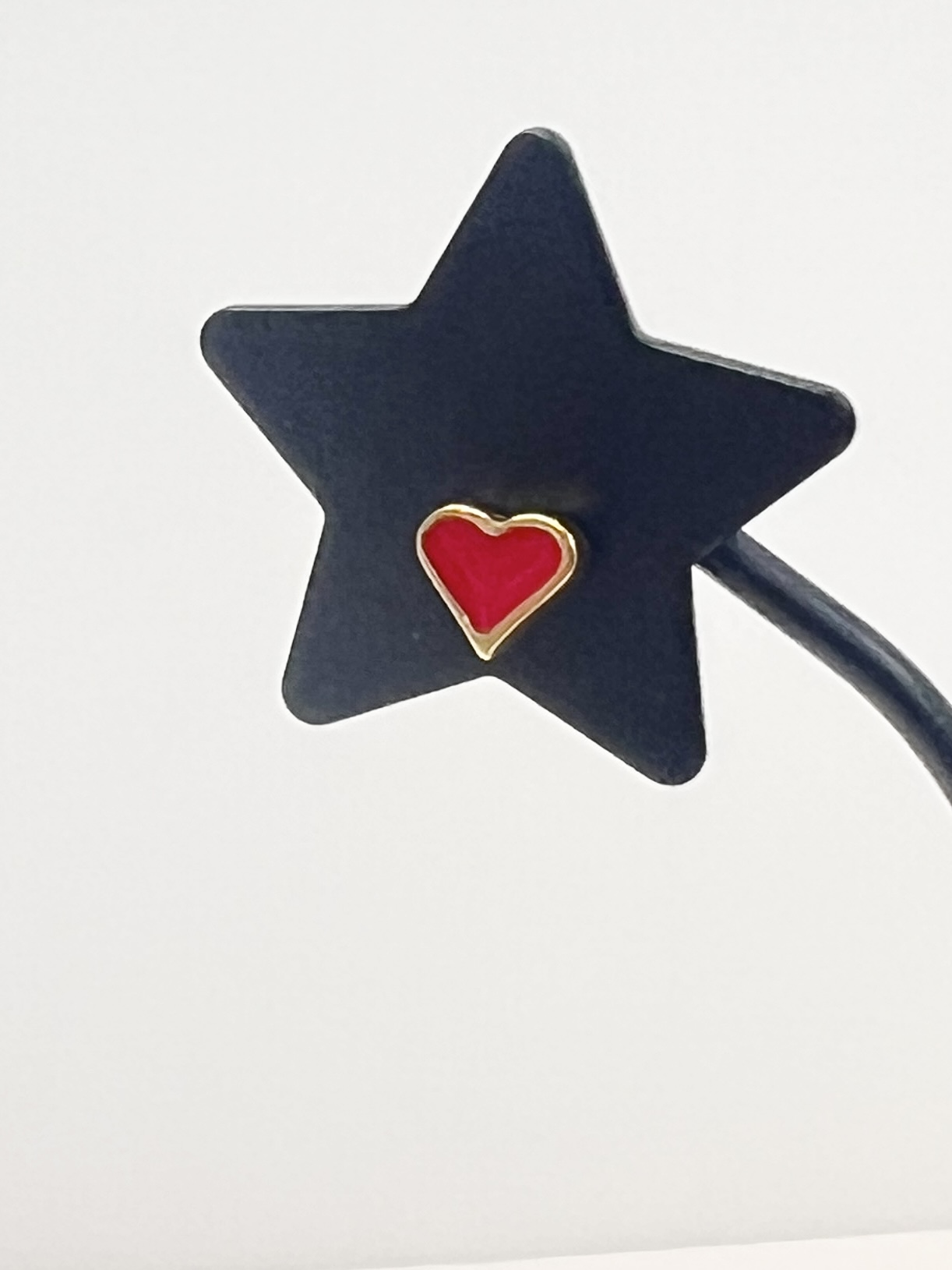 16G ポップハートストレートバーベルボディピアス(シルバー×ブラック)