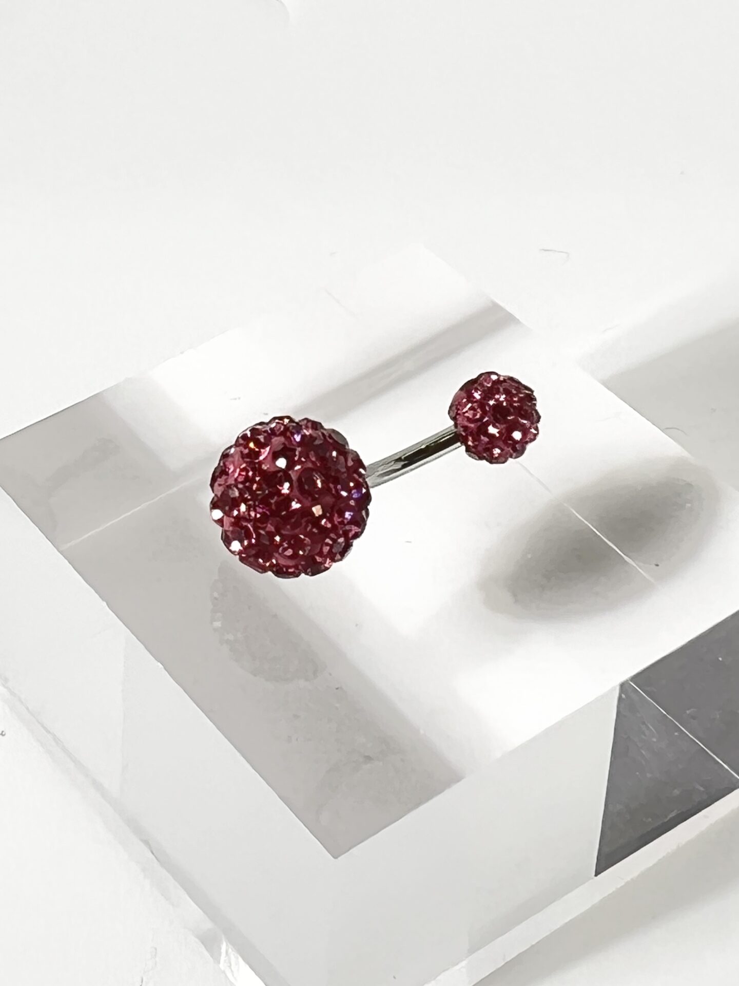 14G カラーパヴェバナナバーベルボディピアス・へそピアス (ピンク)