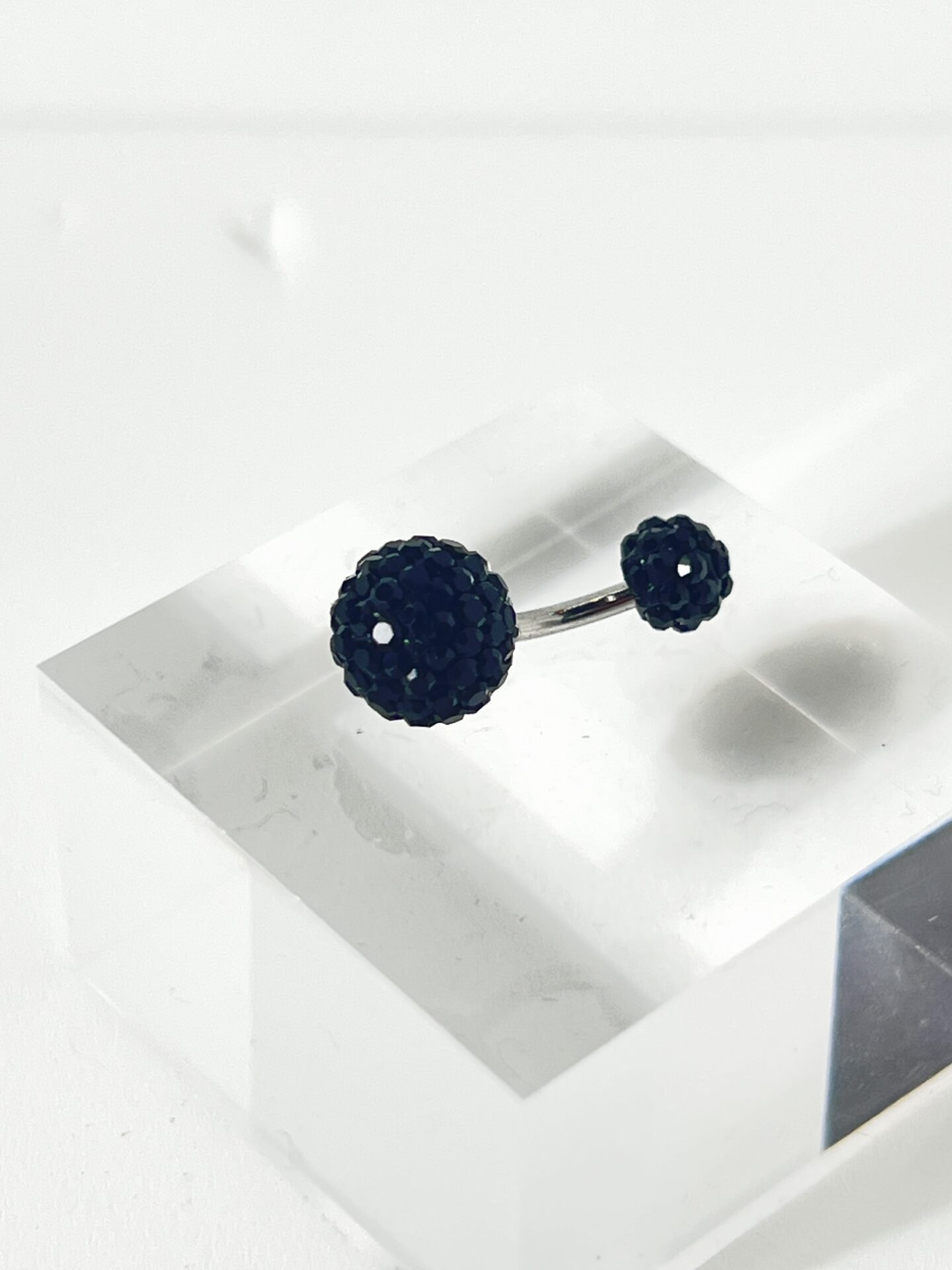 14G カラーパヴェバナナバーベルボディピアス・へそピアス (ブラック)