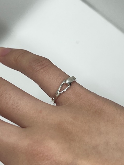 この独特なデザインは、リングが優雅に結びついているように見え、あなたの指元に洗練された印象を与えます。シンプルながらも存在感のあるスタイルで、日常使いはもちろん、特別なイベントやデートでも華やかに演出します。