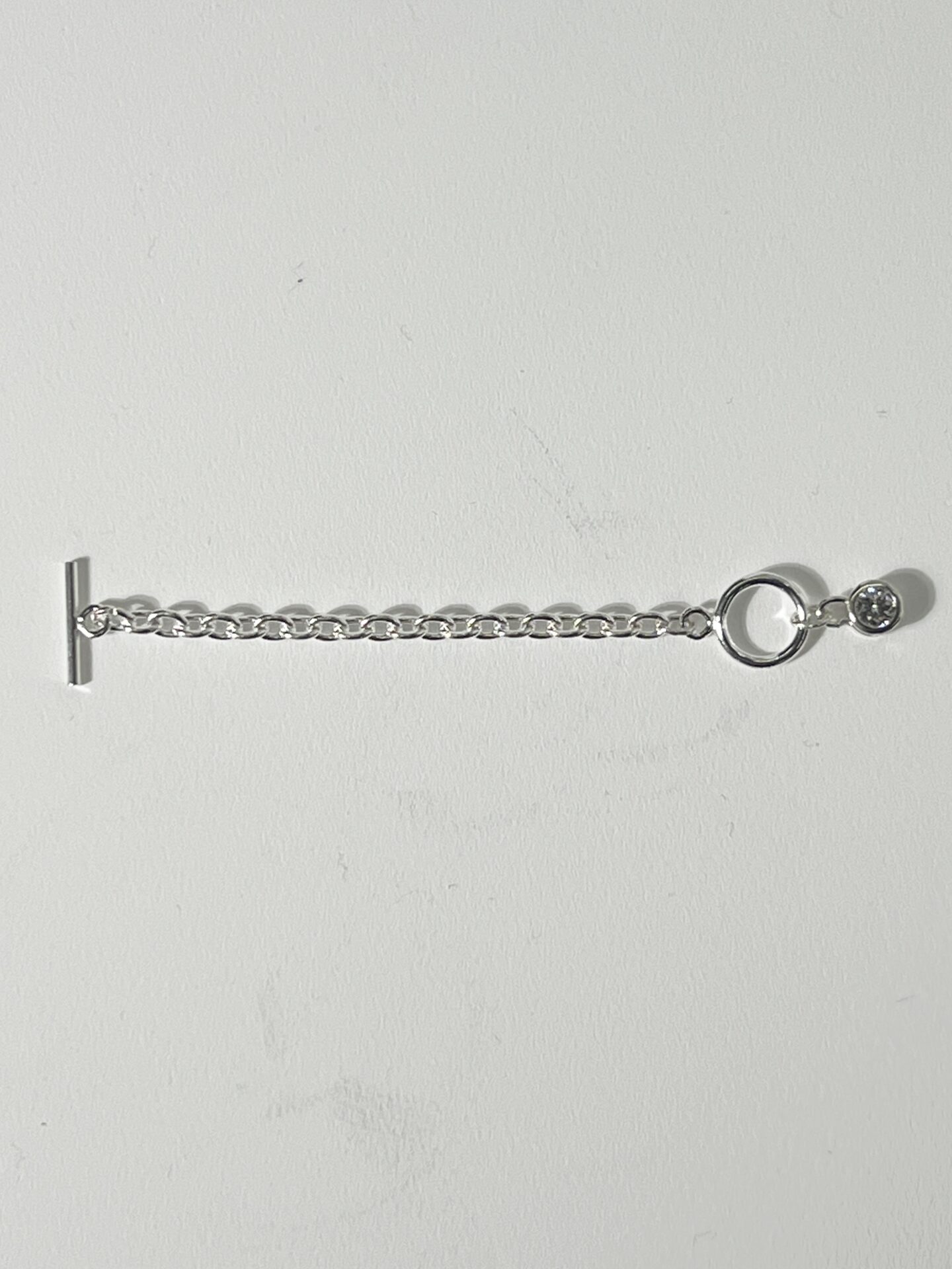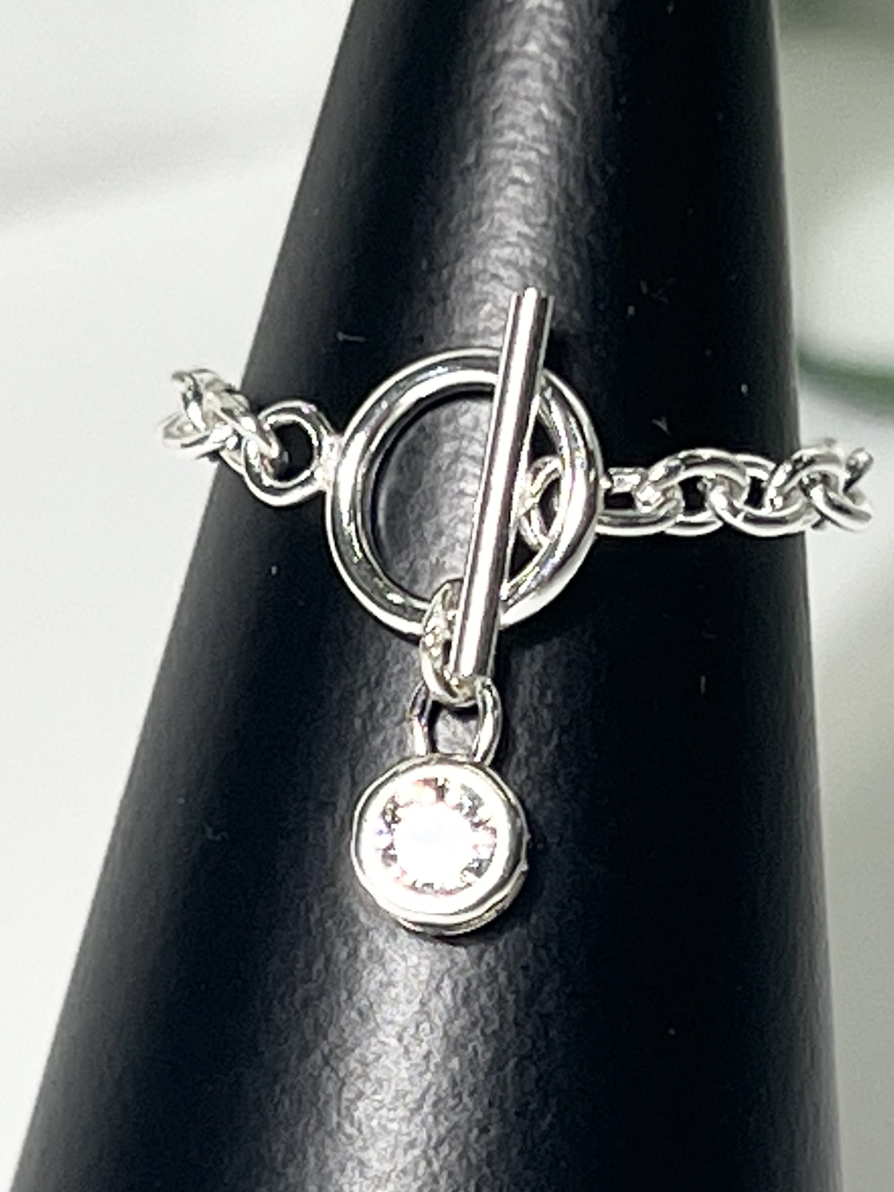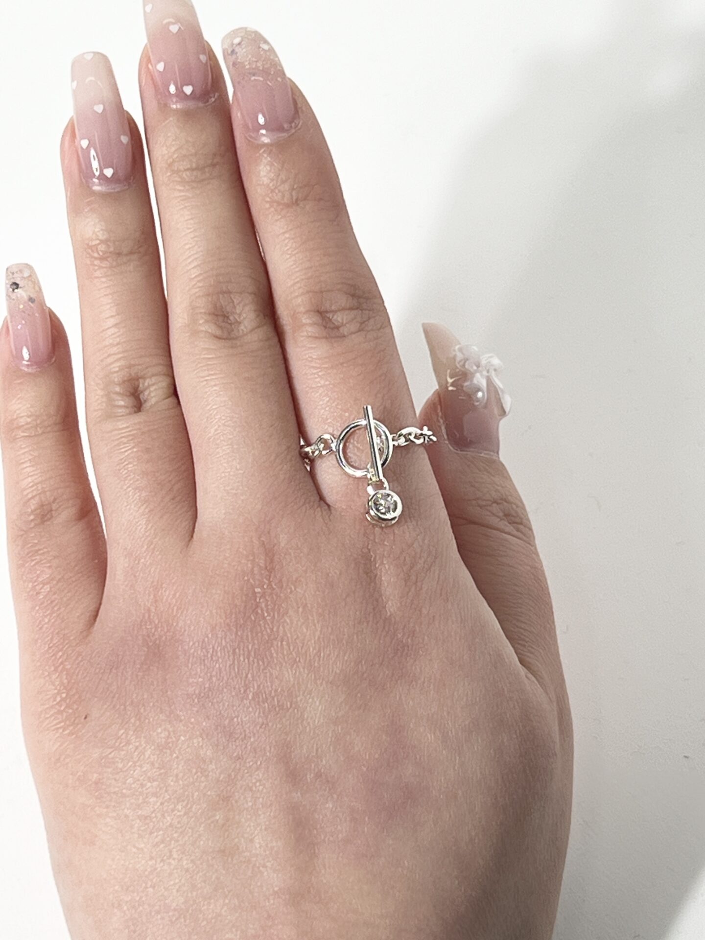 洗練されたデザインと華やかさを兼ね備えた、マンテルチェーンリング(2)は、ジルコニアをワンポイントで使用しています。