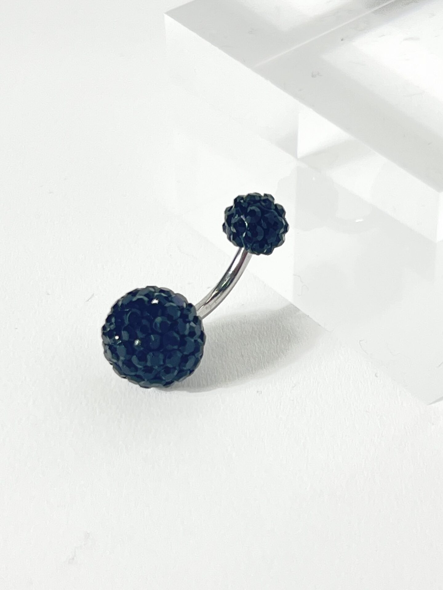 カラフルなパヴェストーンが施された、14G カラーパヴェバナナバーベルボディピアス・へそピアス(ブラック)が新登場です!