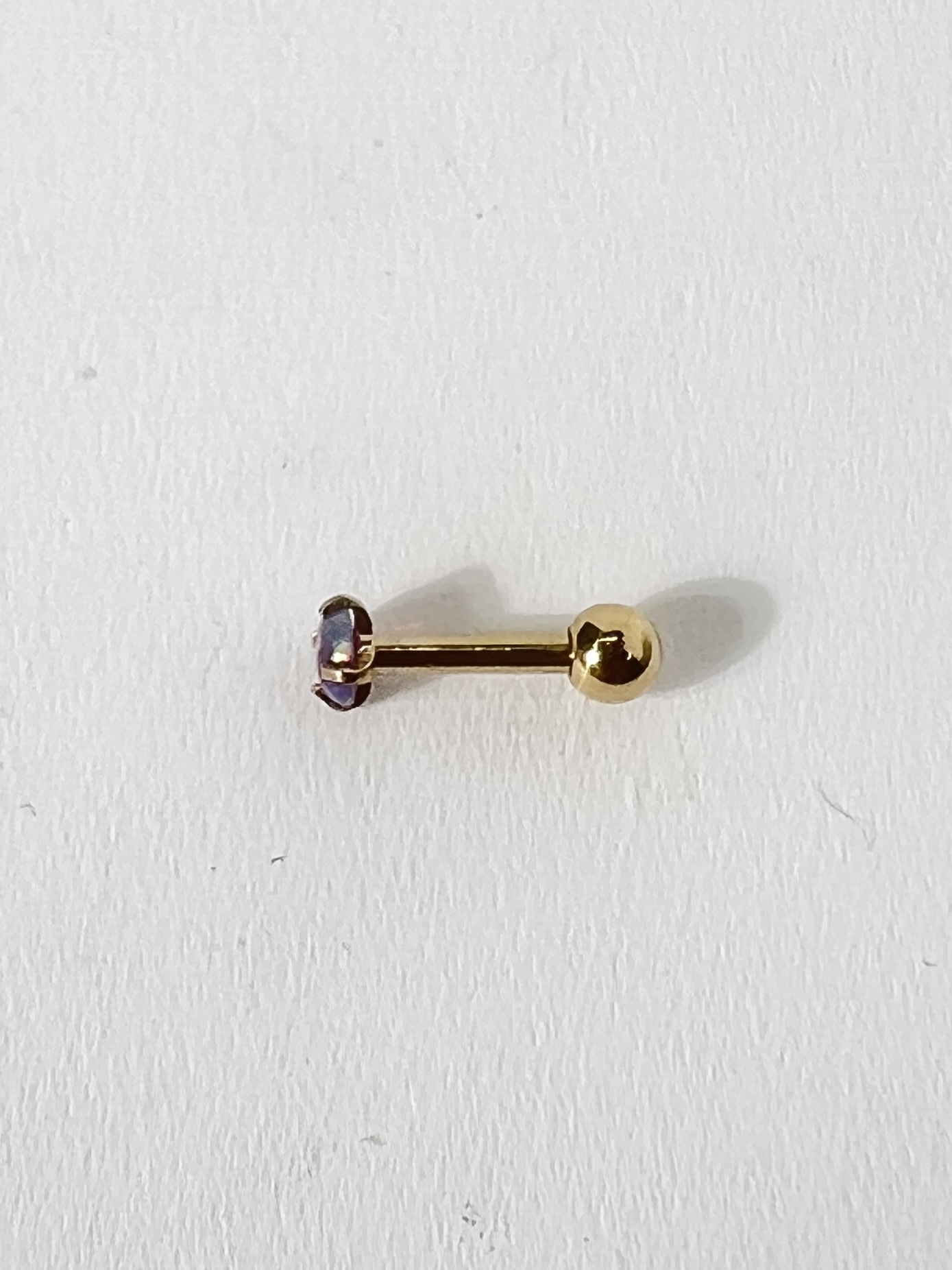 煌めくパープルのオーロラカラーストーンが輝く、16G オーロラカラーストーンストレートバーベルボディピアスが新たに登場です!