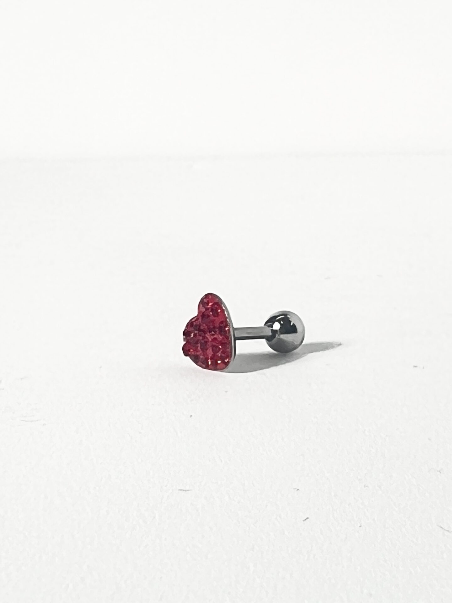 鮮やかなレッドが目を引く、16G パヴェカラーハートストレートバーベルボディピアスが新たに登場です!