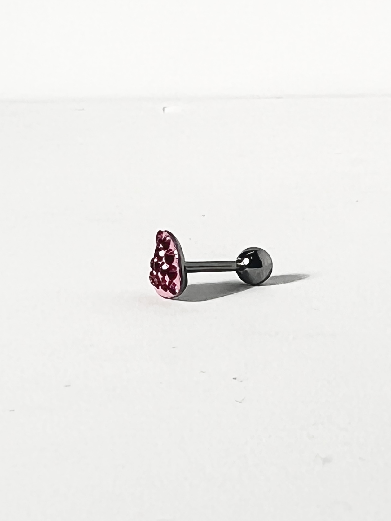 鮮やかなピンクカラーのパヴェカラーハートをあしらった、16G ストレートバーベルボディピアスが新たに登場です!