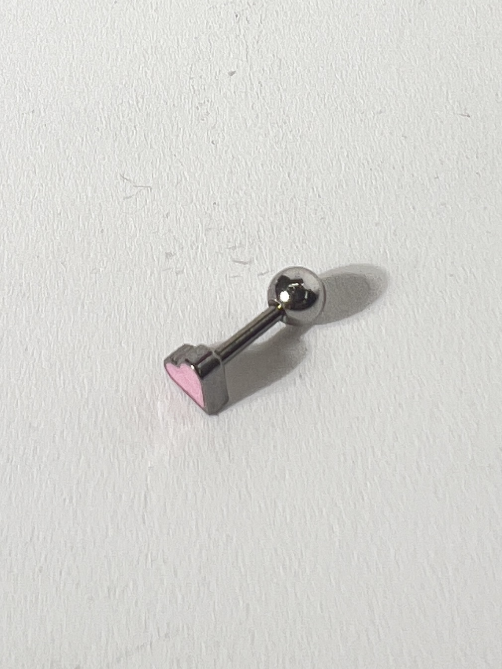 華やかなシルバーとポップなピンクが絶妙にミックスされた、16G ポップハートストレートバーベルボディピアスが新しく登場です!