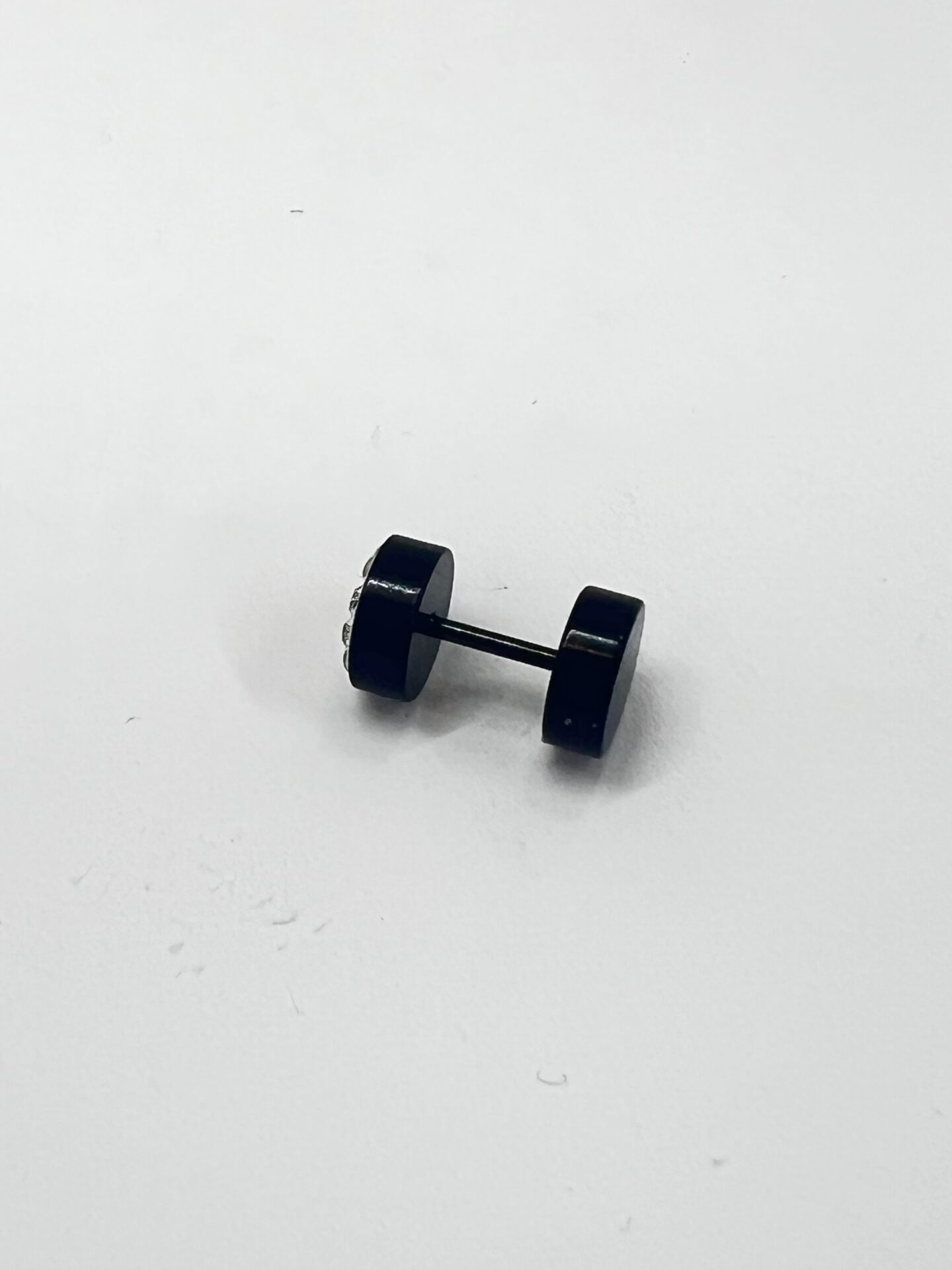洗練されたブラックのパヴェダンベルがデザインされた、18G パヴェダンベルストレートバーベルボディピアスが新たに登場です!