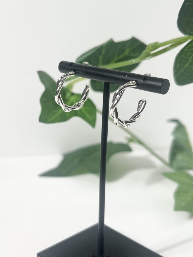 洗練されたツイストデザインが印象的なハーフフープピアス。
